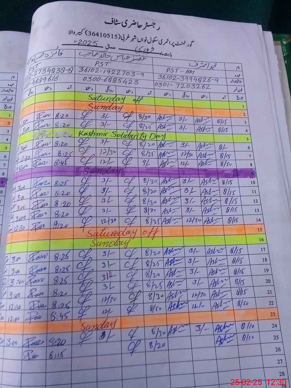 | CNIC | Full Name | Designation | R/C | Absence During Last Calender Month |