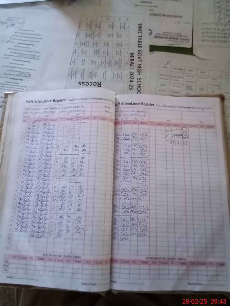 | CNIC | Full Name | Designation | R/C | Absence During Last Calender Month |