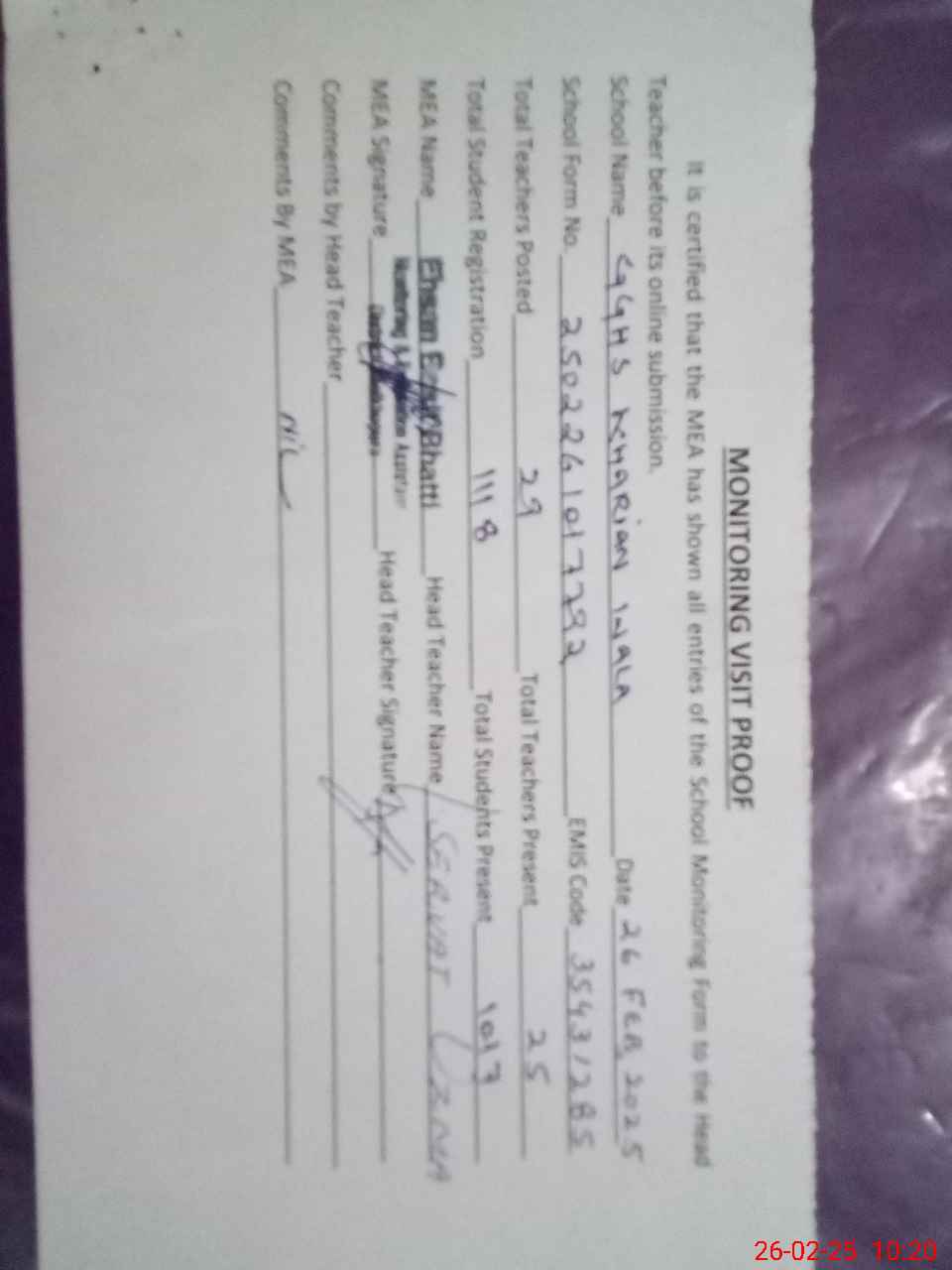 | EMIS Code: 35431285 | Name of School: GGHS KHARIAN WALA | |||