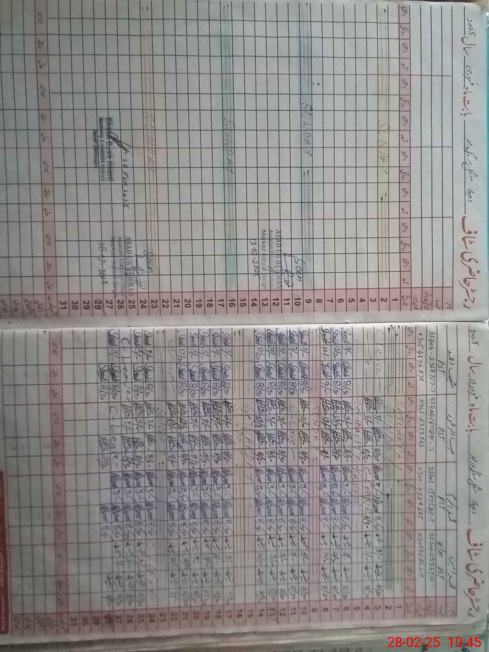 | CNIC | Full Name | Designation | R/C | Absence during last cal. month |