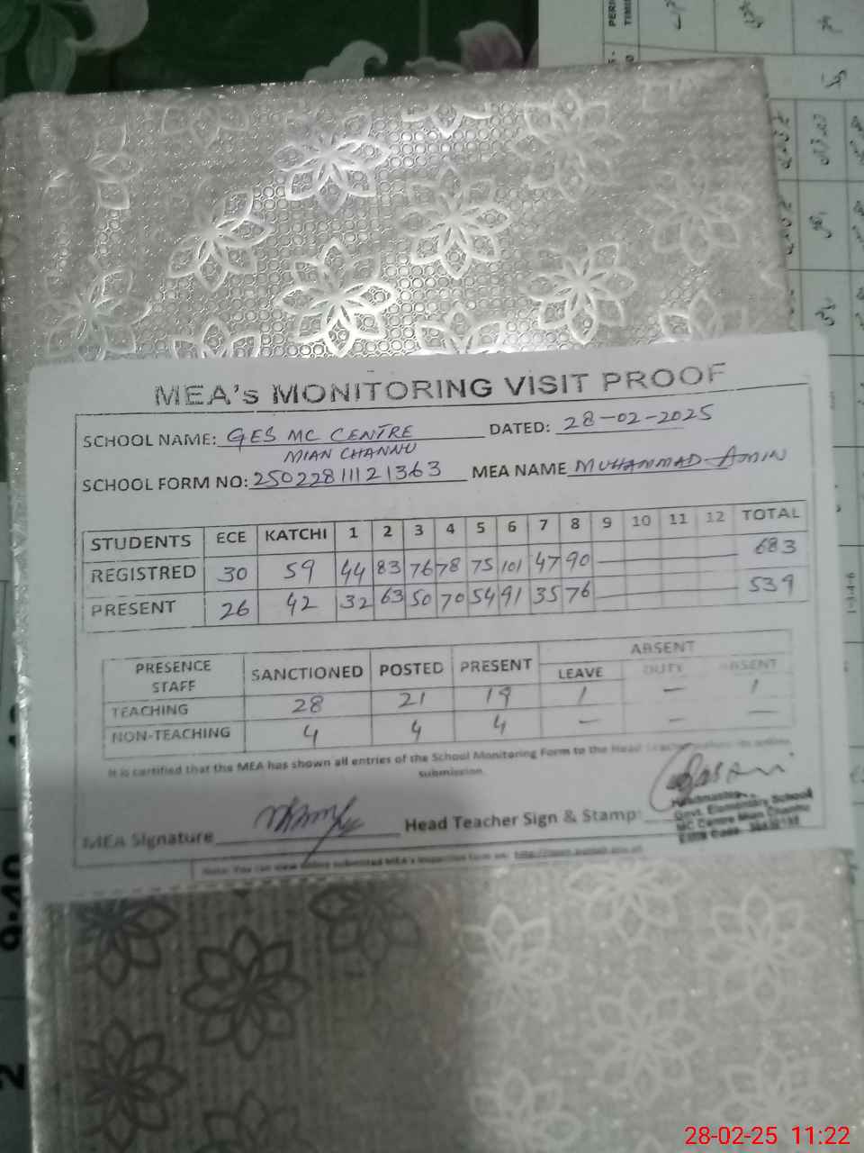 | EMIS Code: 36430132 | Name of School: GES MC CENTRE MIAN CHANNU | |||