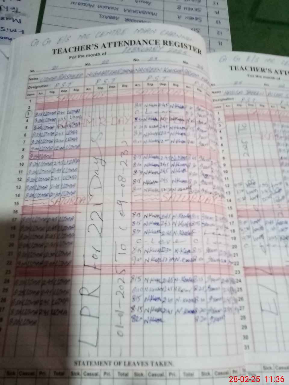 | Leave | Duty | Absent | Maternity | Medical | Ex- Pak |