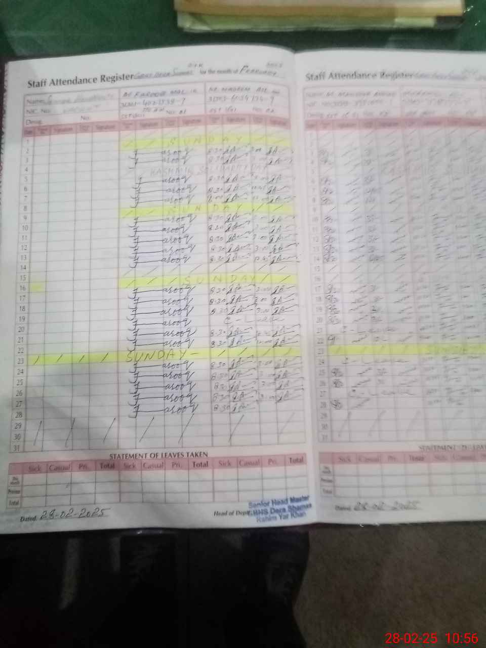 | CNIC | Full Name | Designation | R/C | Absence During Last Calender Month |