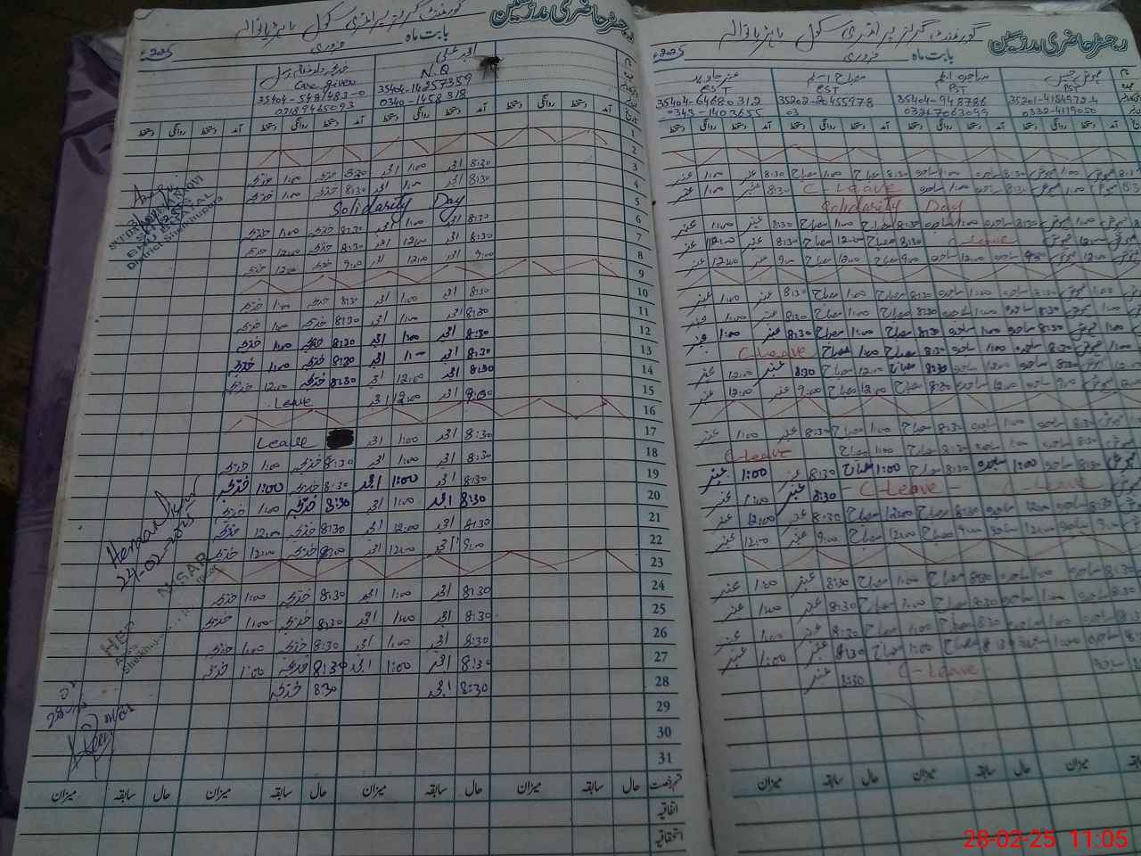 | CNIC | Full Name | Designation | R/C | Absence During Last Calender Month |