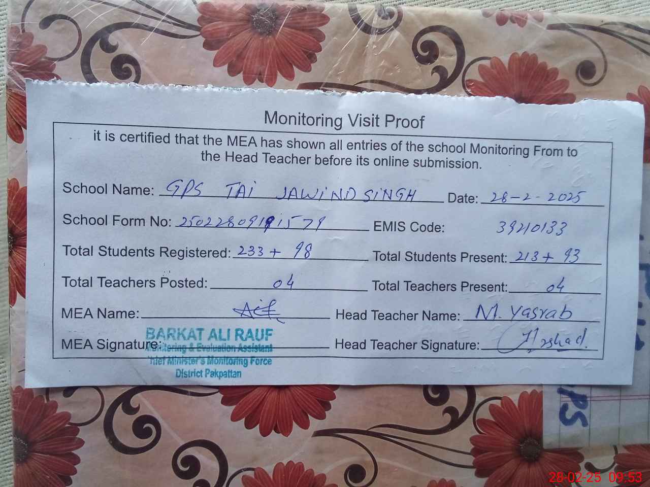 | EMIS Code: 39210133 | Name of School: GPS TAI JAWIND SINGH | |||