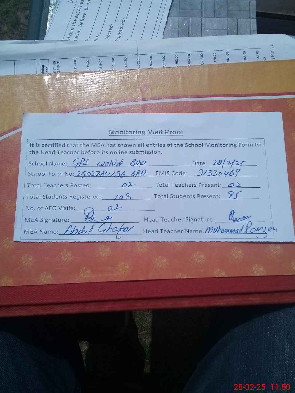 | EMIS Code: 31330469 | Name of School: GPS WAHID BUX | |||