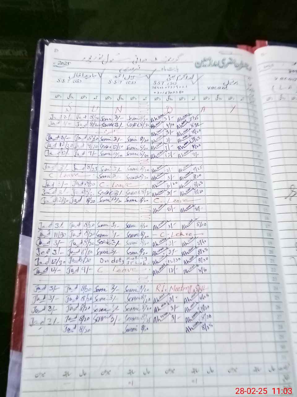 | Leave | Duty | Absent | Maternity | Medical | Ex- Pak |