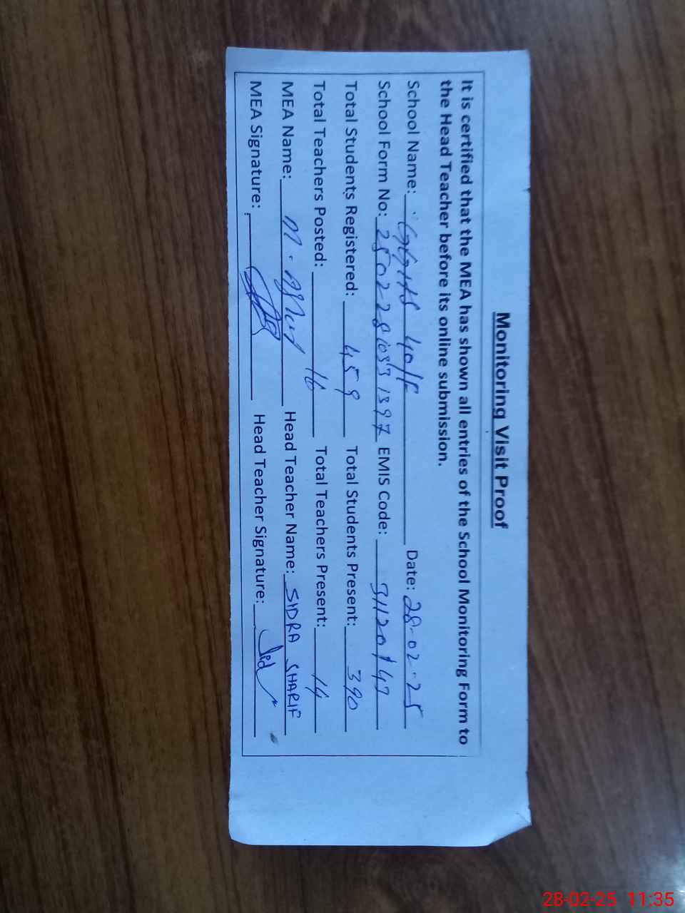 | EMIS Code: 31120143 | Name of School: GGHS CHAK NO. 40/F | |||
