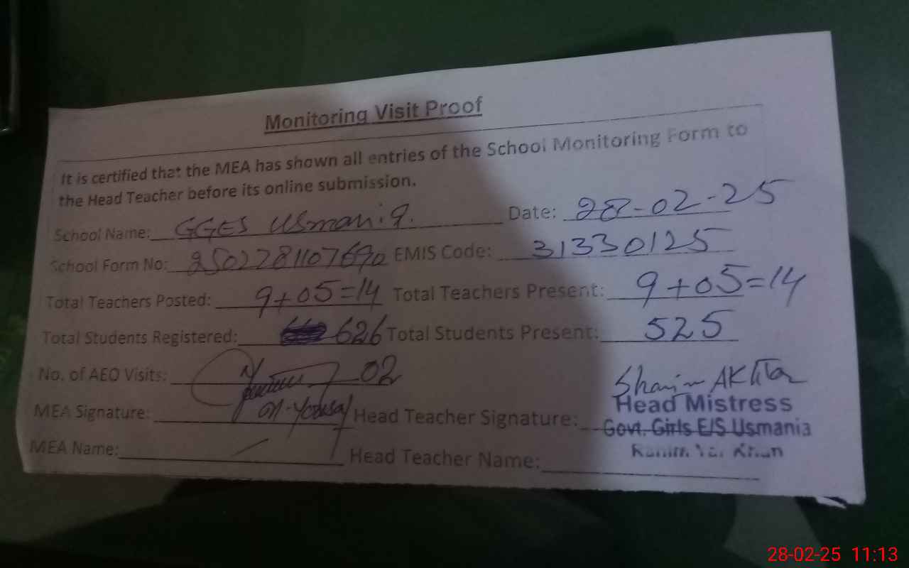 | EMIS Code: 31330125 | Name of School: GGES USMANIA | |||