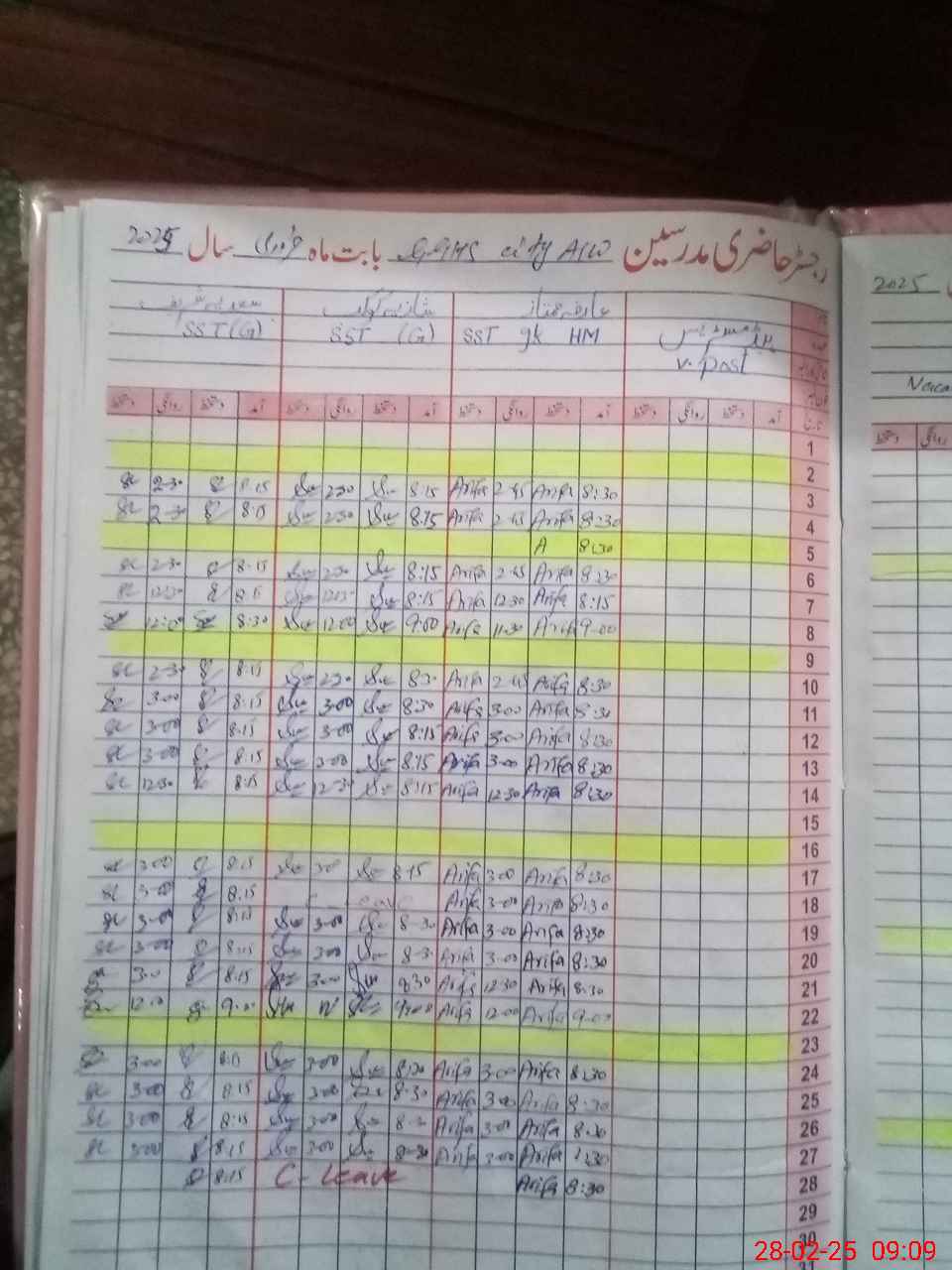 | CNIC | Full Name | Designation | R/C | Absence During Last Calender Month |
