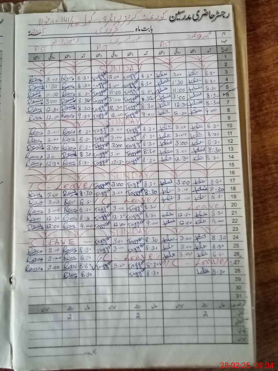 | CNIC | Full Name | Designation | R/C | Absence During Last Calender Month |