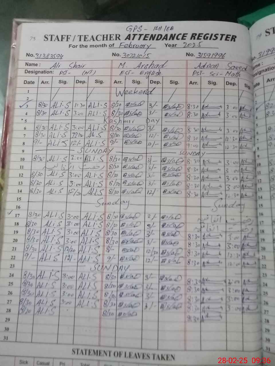 | Name: AL**** SH**** Designation: (School Headmaster's/Headmistress's) PST Phone/Cell Number: 03**** |
