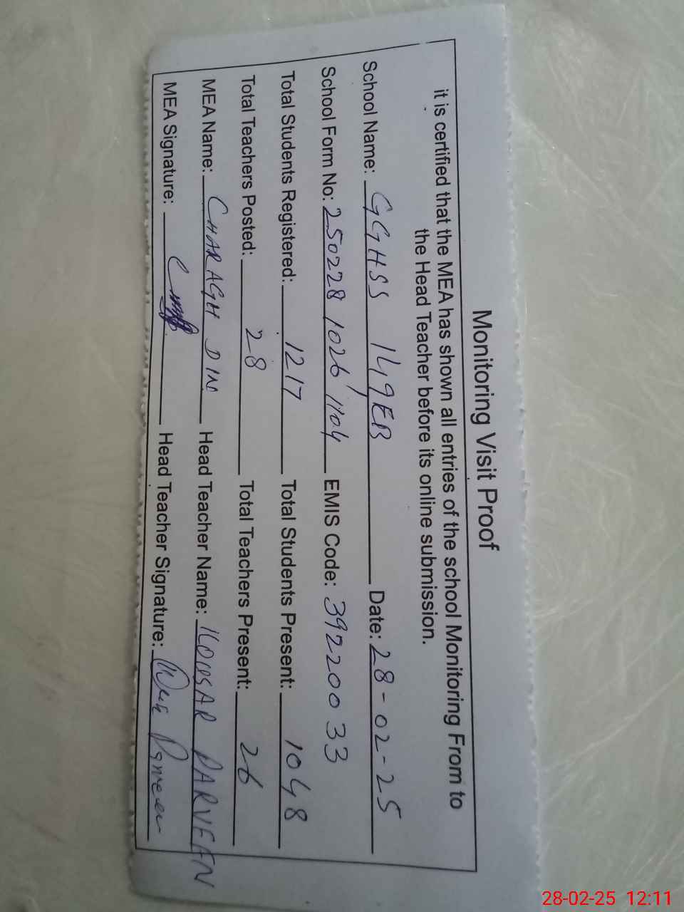 | EMIS Code: 39220033 | Name of School: GGHSS 149 EB ARIFWALA | |||