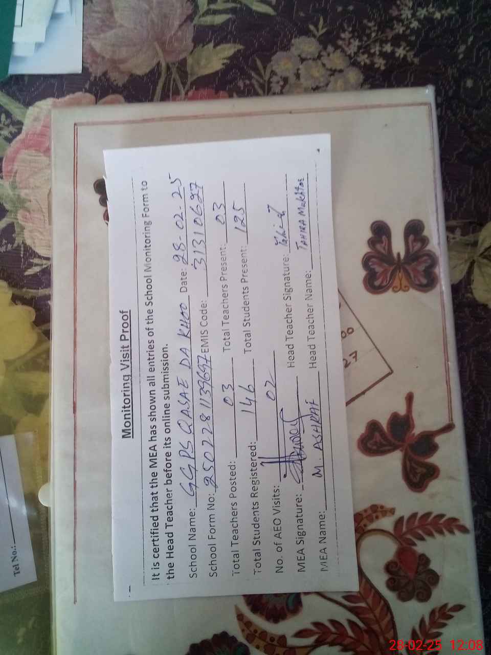 | EMIS Code: 31310627 | Name of School: GGPS QASAIDA KHOO | |||