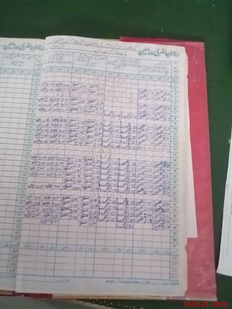 | CNIC | Full Name | Designation | R/C | Absence During Last Calender Month |