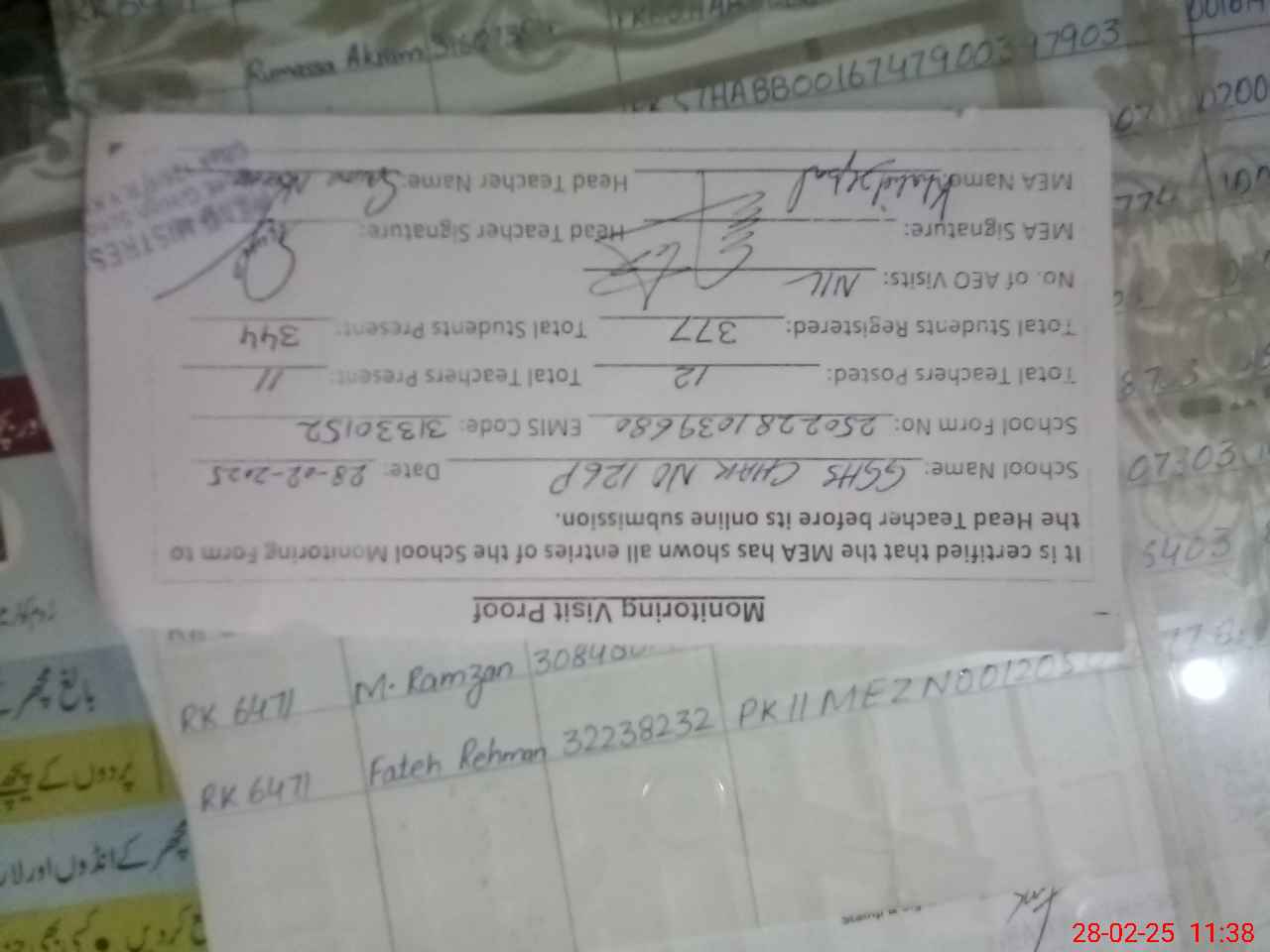 | EMIS Code: 31330152 | Name of School: GGHS CHAK NO. 126/P | |||