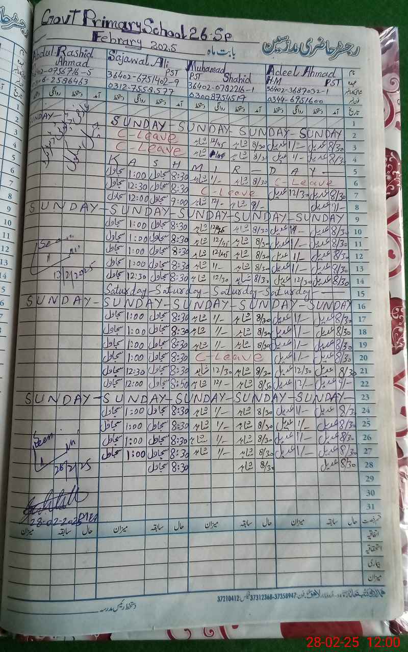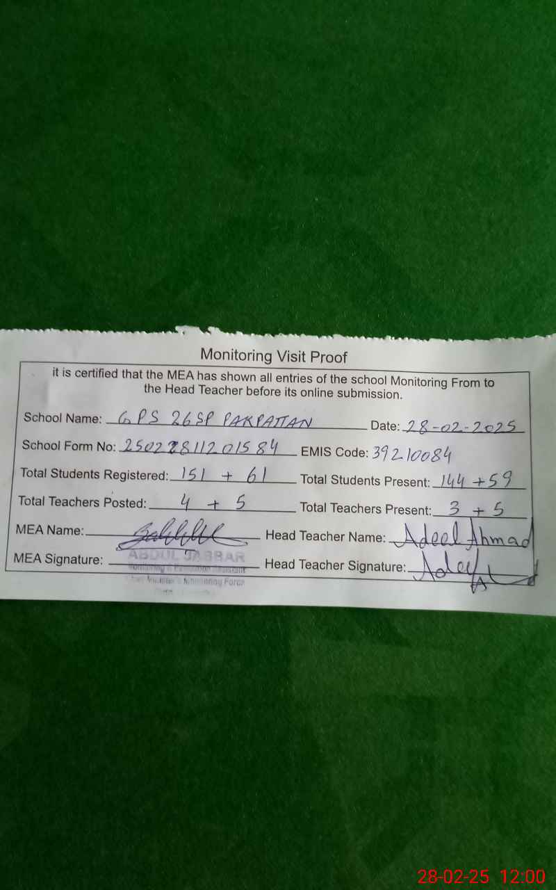 | EMIS Code: 39210084 | Name of School: GPS 26/SP PAKPATTAN | |||