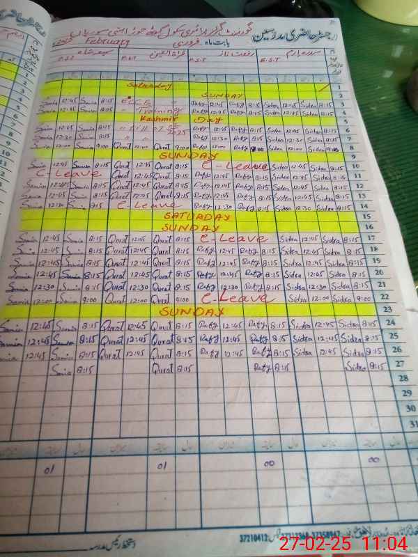 | Name: SI**** IR**** Designation: (School Headmaster's/Headmistress's) EST GEN Phone/Cell Number: 03**** |