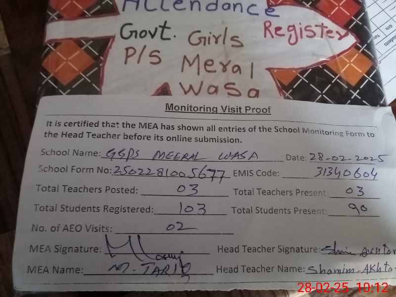 | EMIS Code: 31340604 | Name of School: GGPS MEERAL WASA | |||