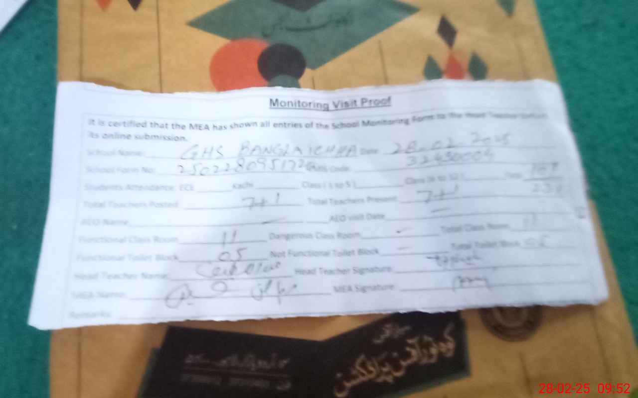 | EMIS Code: 32430004 | Name of School: GHS BANGLA ICHHA | |||