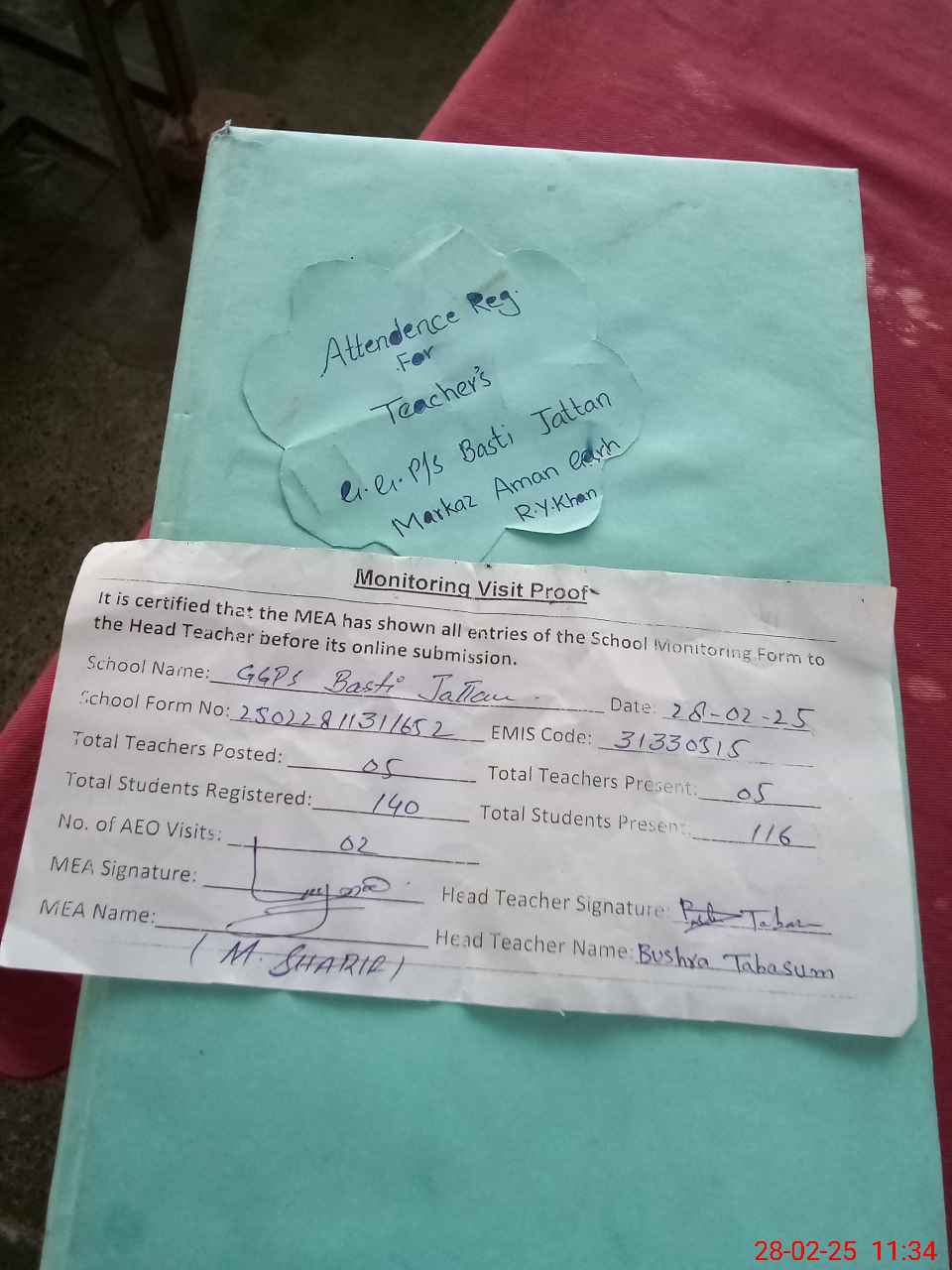 | EMIS Code: 31330515 | Name of School: GGPS BASTI JATTAN R.Y.KHAN | |||