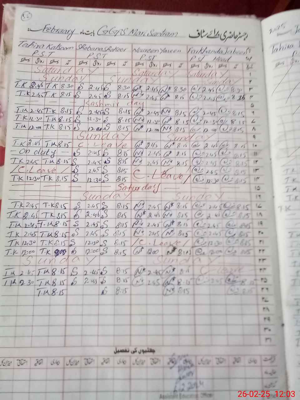 | CNIC | Full Name | Designation | R/C | Absence During Last Calender Month |
