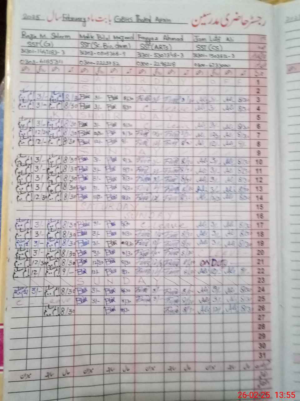 | Name: Gh**** Ha**** Designation: (School Headmaster's/Headmistress's) SST OPS Phone/Cell Number: 03**** |