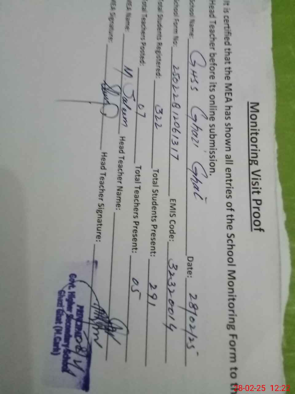 | EMIS Code: 32320014 | Name of School: GHSS GHAZI GHAT | |||