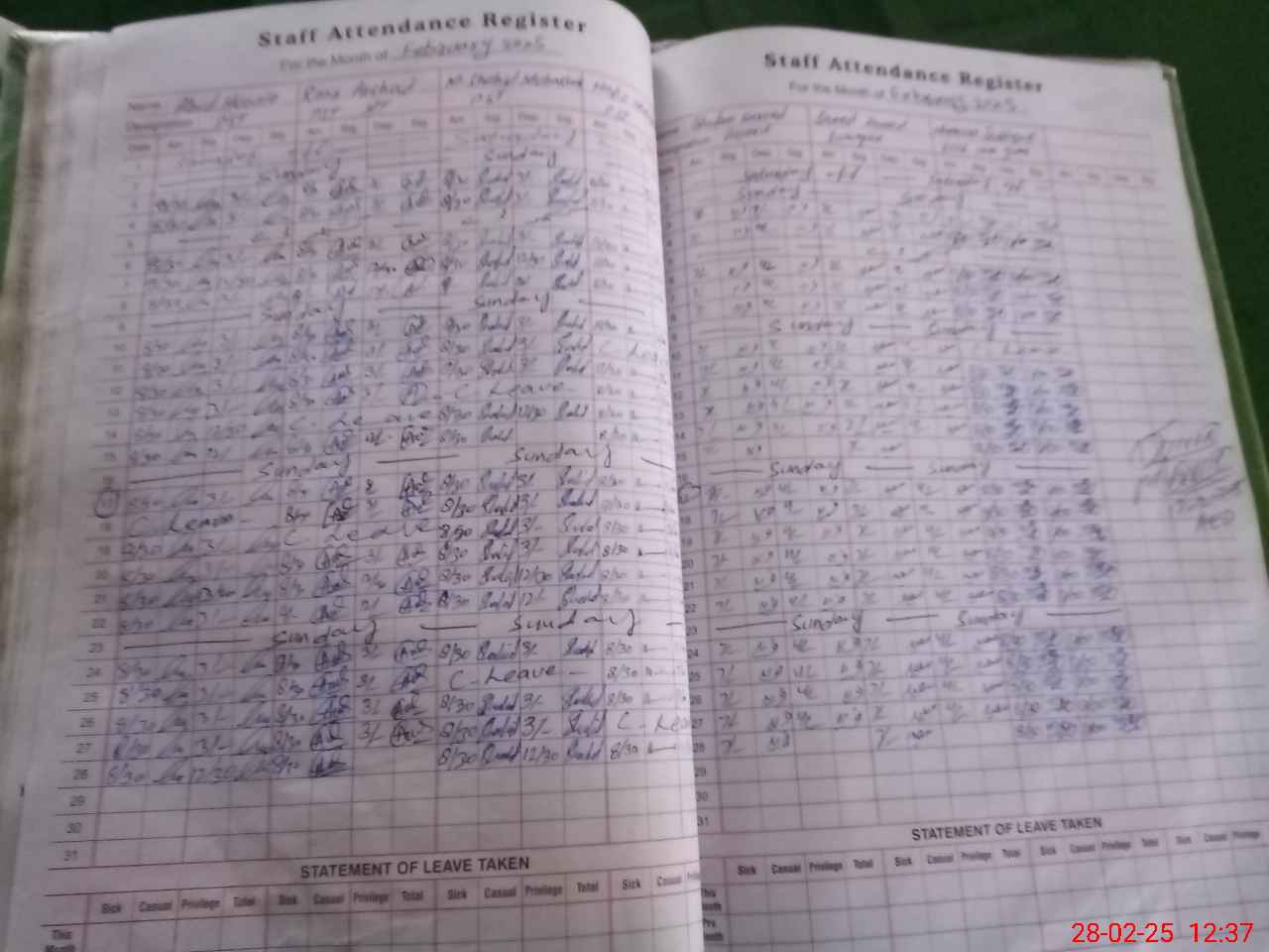 | Leave | Duty | Absent | Maternity | Medical | Ex- Pak |