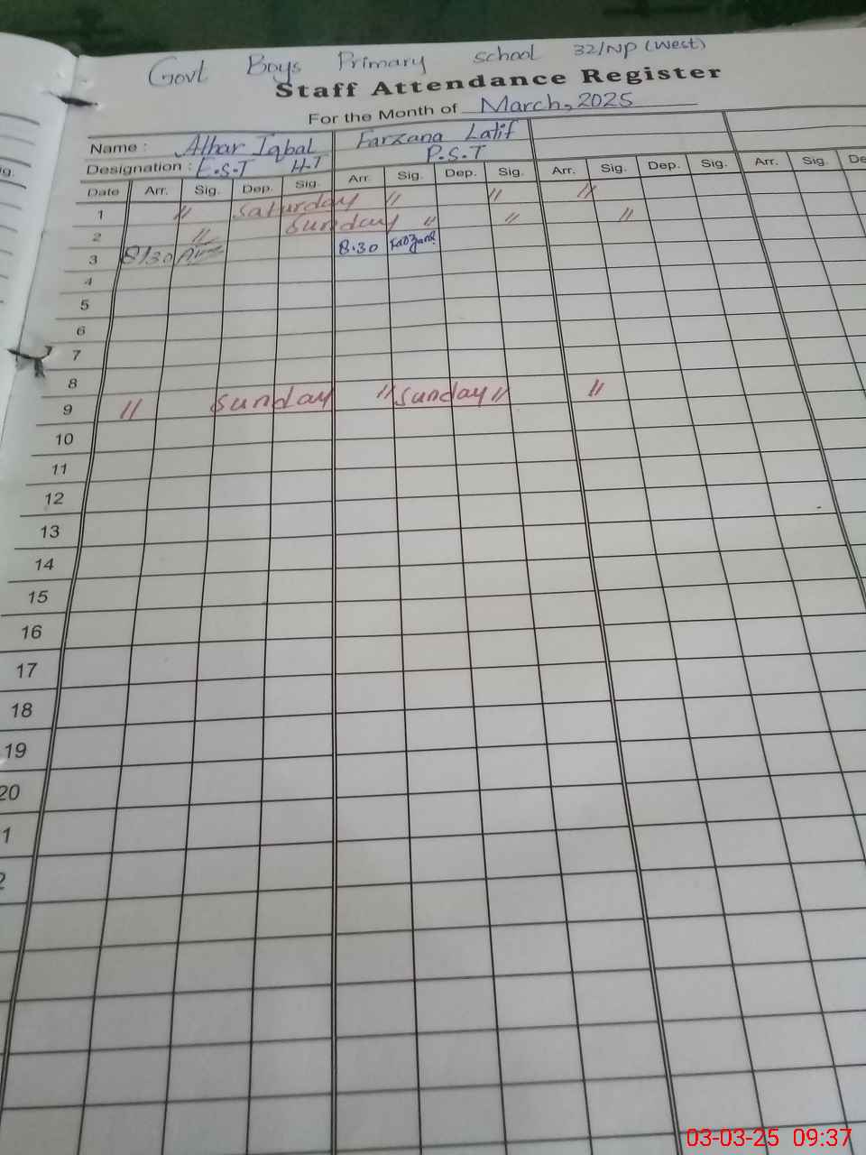| EMIS Code: 31340225 | Name of School: GPS CHAK NO. 32 WEST | |||