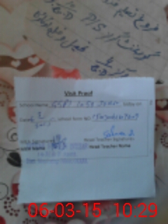 | School Visited by School Health & Nutrition Supervisor (No. of Visits) | 1 | Name1: | SHAHZAD AHMAD | Name2: | |