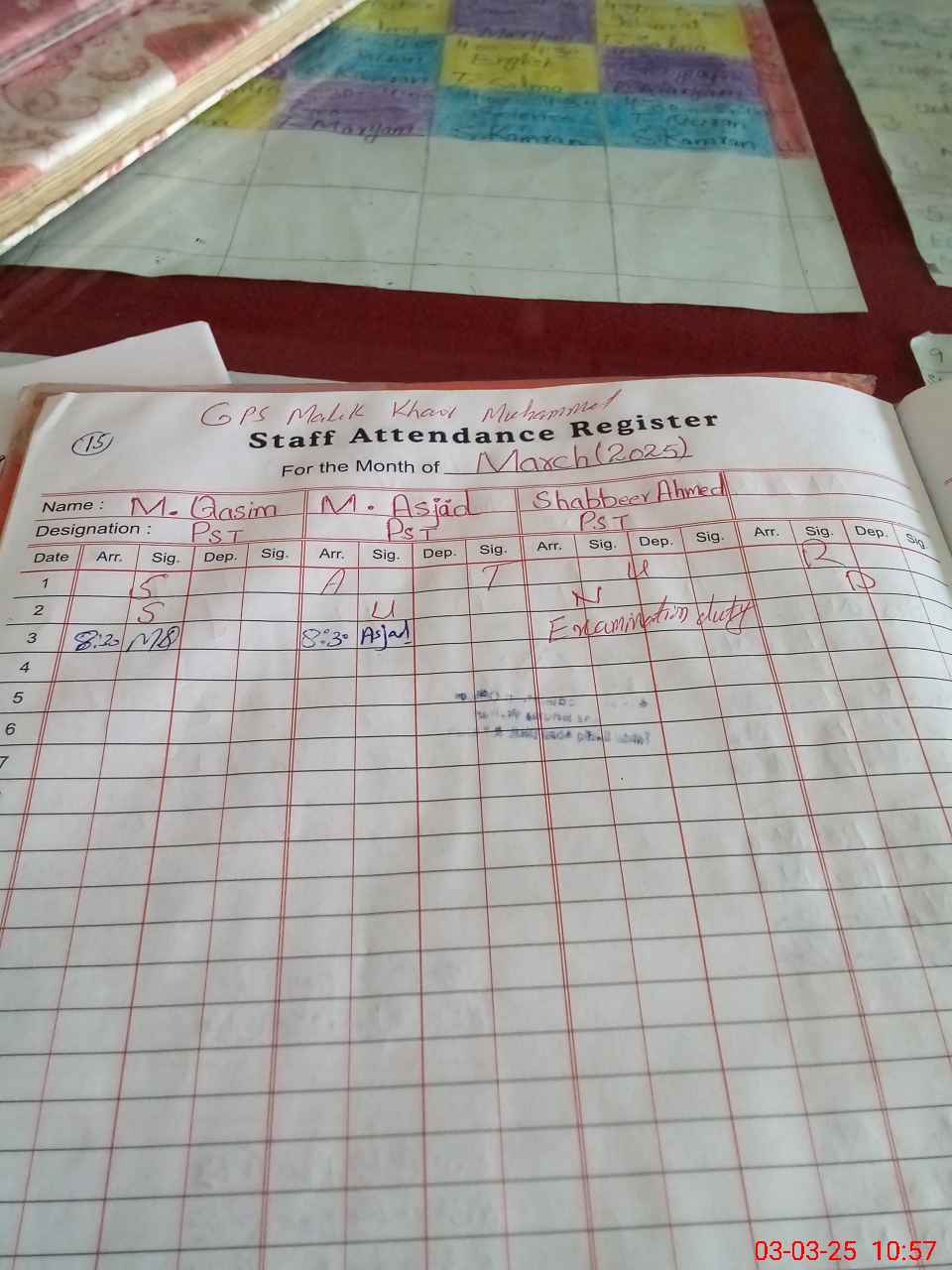| Name: M.**** Designation: (School Headmaster's/Headmistress's) PST Phone/Cell Number: 03**** |