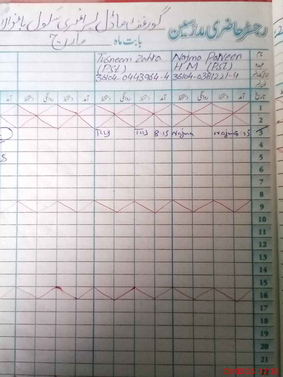 | Name: Na**** Pe**** Designation: (School Headmaster's/Headmistress's) PST Phone/Cell Number: 03**** |