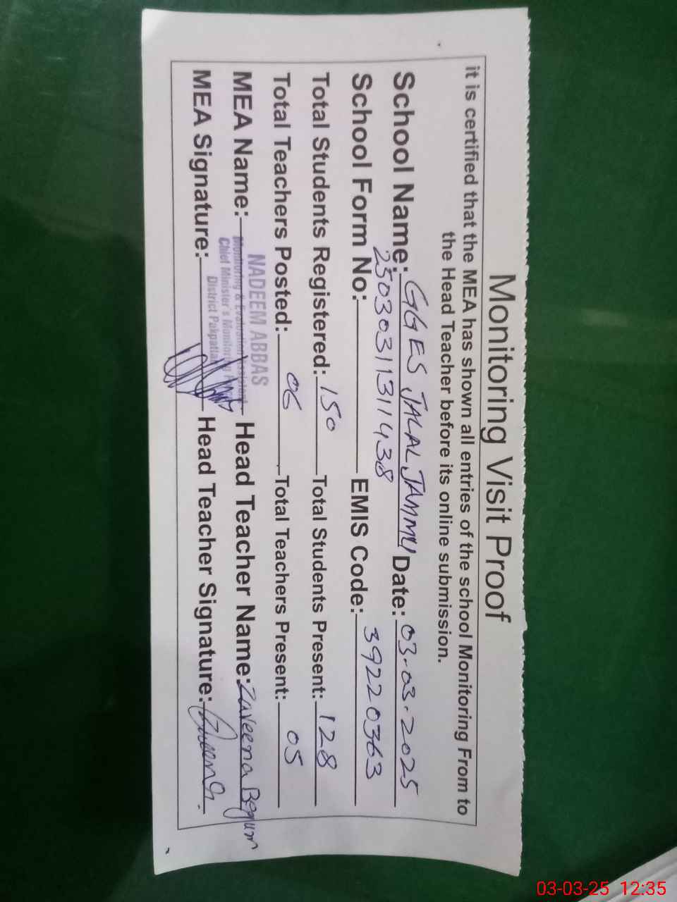 | EMIS Code: 39220363 | Name of School: GGES JALAL JAMMOON POST OFFICE MARI HAZARA | |||