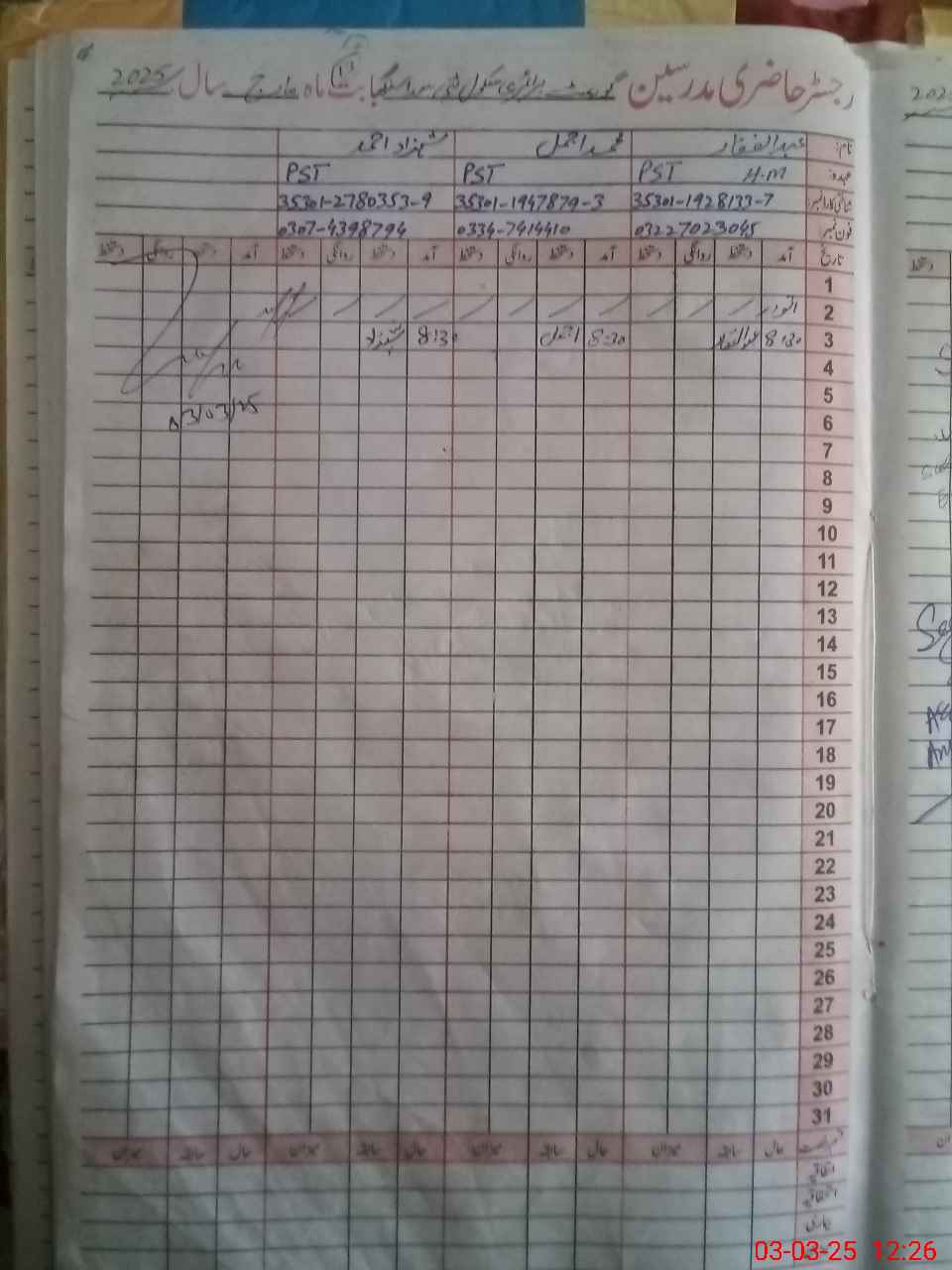 | Name: ZA**** IQ**** Designation: (School Headmaster's/Headmistress's) EST AT Phone/Cell Number: 03**** |