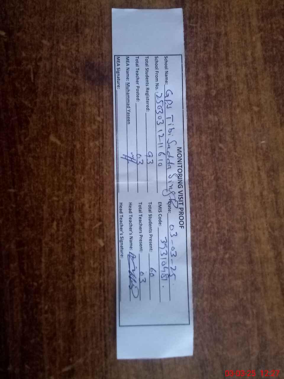 | EMIS Code: 39310481 | Name of School: GPS TIBBI SADA SINGH | |||