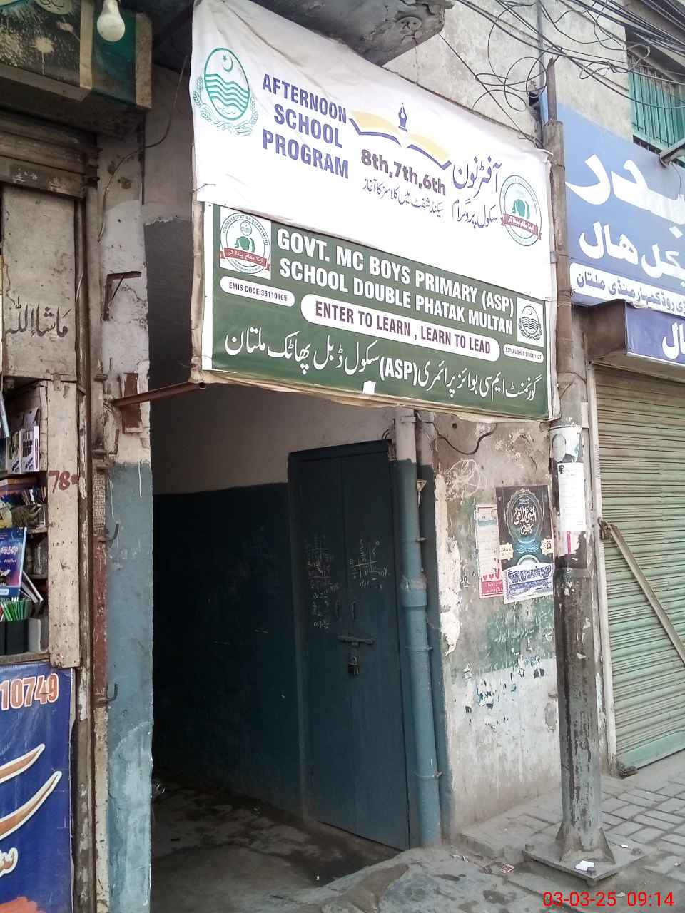 | EMIS Code: 36110165 | Name of School: GPS MC DOUBLE PHATAK VEHARI ROAD MULTAN | |||