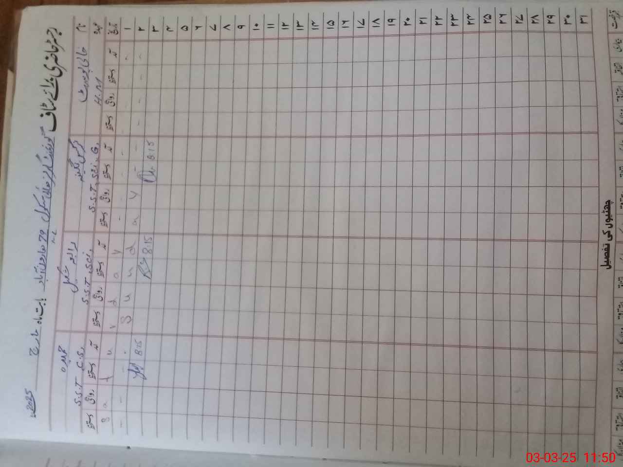 | CNIC | Full Name | Designation | R/C | Absence During Last Calender Month |