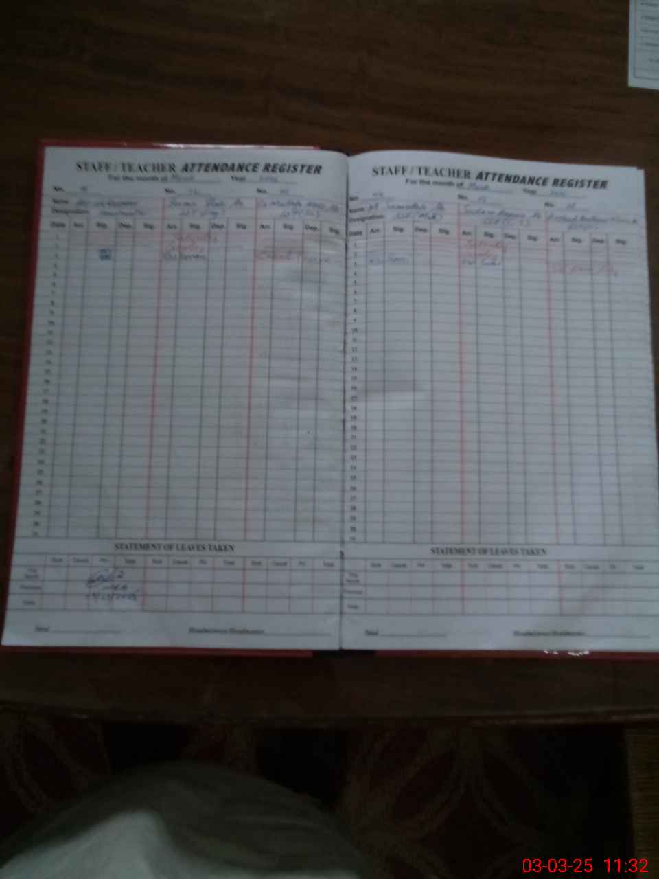 | 32**** | Ar**** Ba**** Kh**** | 3 | 1 | 0 | 0 | 0 | 0 | 0 | 0 | 0 | 0 | 0 | Exam Duty |