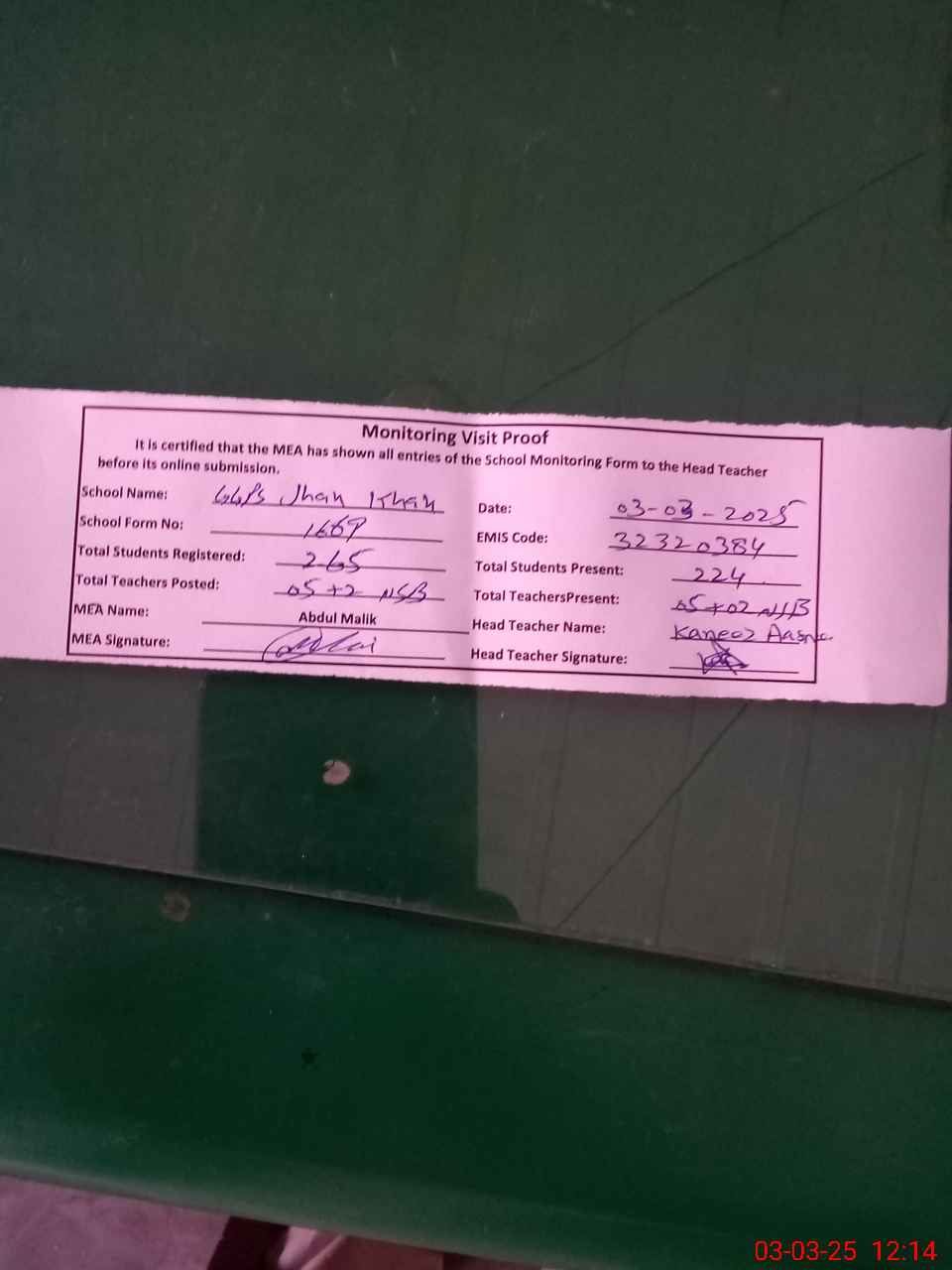 | EMIS Code: 32320384 | Name of School: GGPS JAHAN KHAN | |||