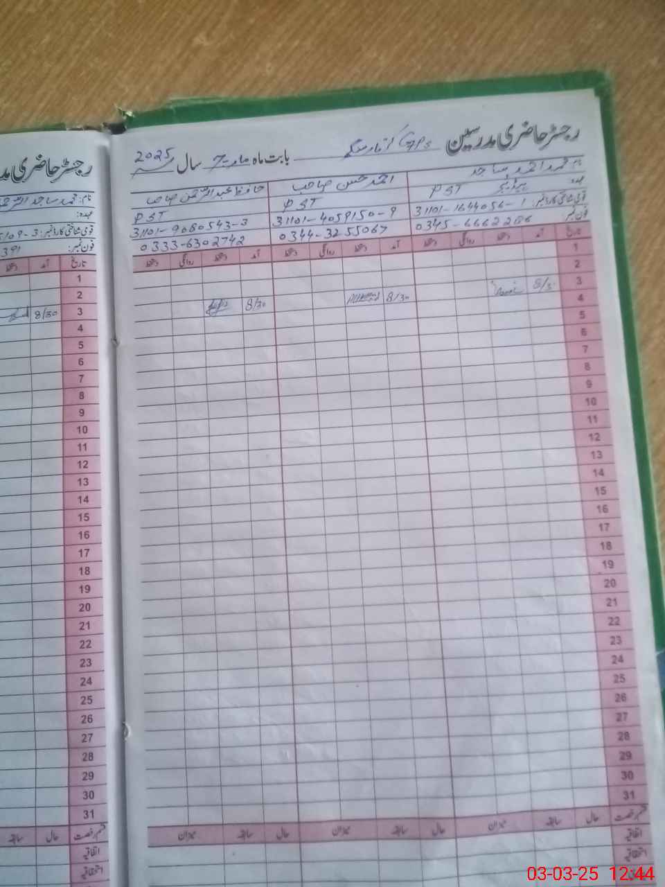 | Name: MU**** AH**** SA**** Designation: (School Headmaster's/Headmistress's) PST Phone/Cell Number: 03**** |