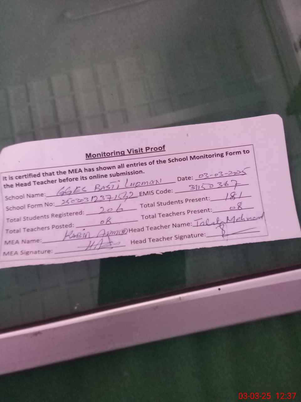 | EMIS Code: 31150367 | Name of School: GGES BASTI LUQMAN | |||