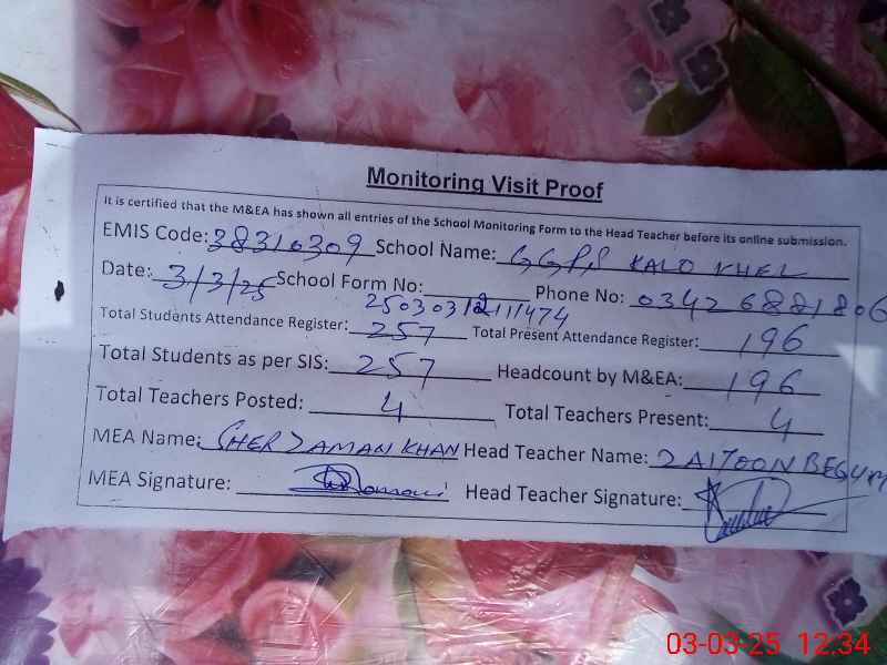 | EMIS Code: 38310309 | Name of School: GGPS KALO KHEL | |||