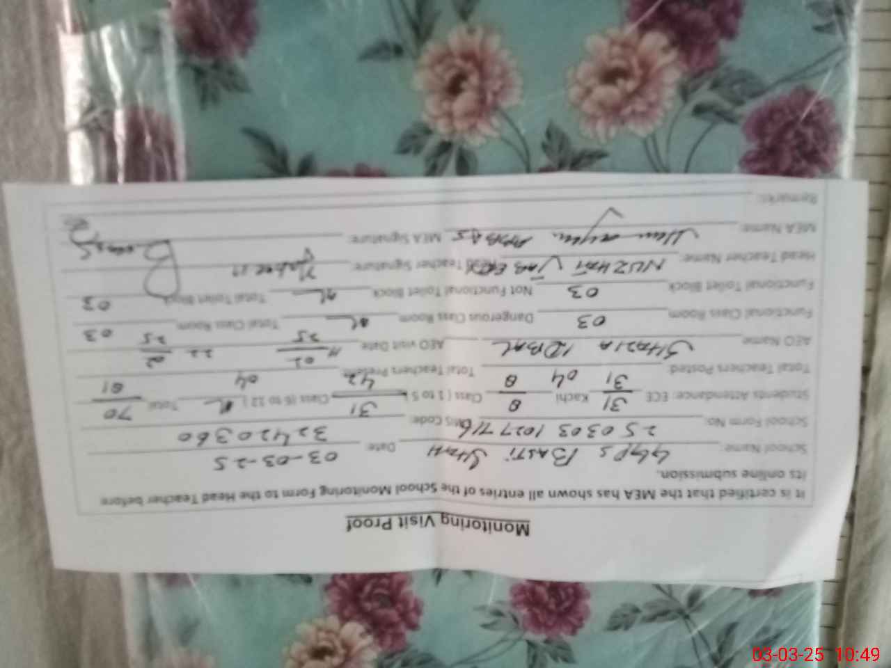 | Certified that this School was Inspected by the Undersigned MEA/DMO Today and the Information Stated Above is as Per Record. | |||||