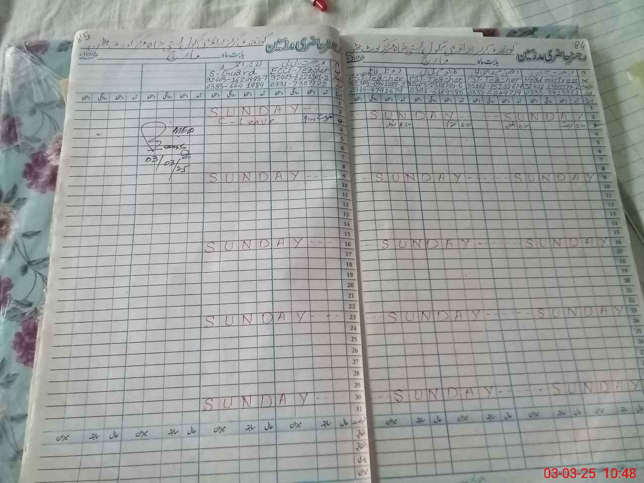 | Leave | Duty | Absent | Maternity | Medical | Ex- Pak |