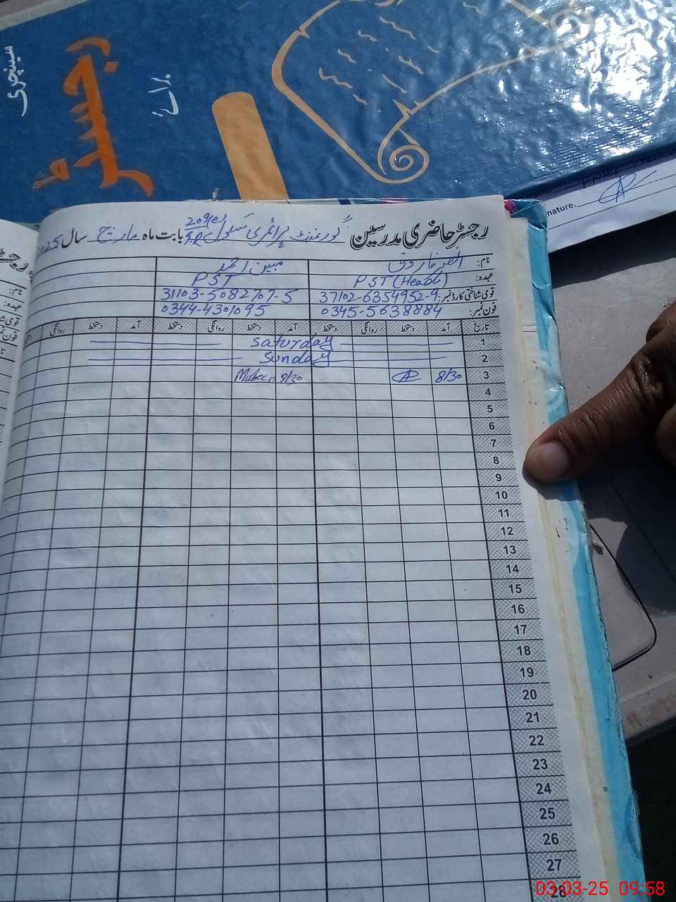 | Name: An**** Fa**** Designation: (School Headmaster's/Headmistress's) PTC Phone/Cell Number: 03**** |