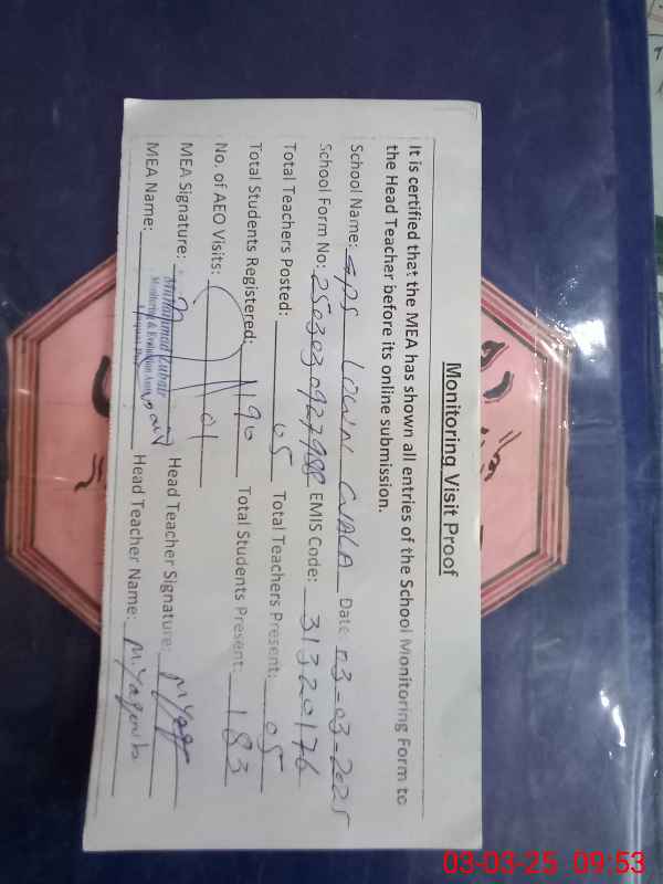 | EMIS Code: 31320176 | Name of School: GPS LOWN WALA | |||
