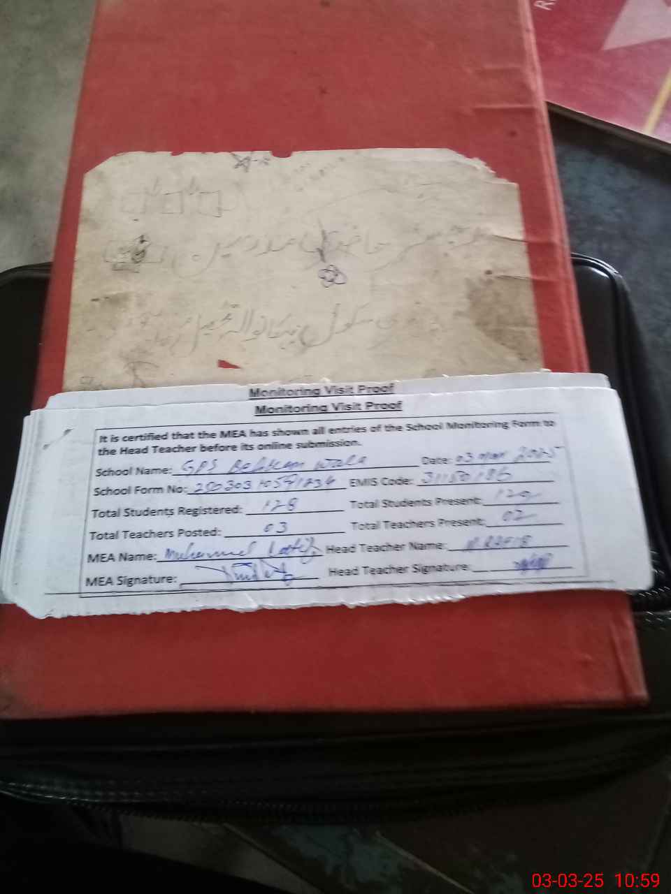 | Attendance Register | Head Teacher | MEA with School | Visit Proof |