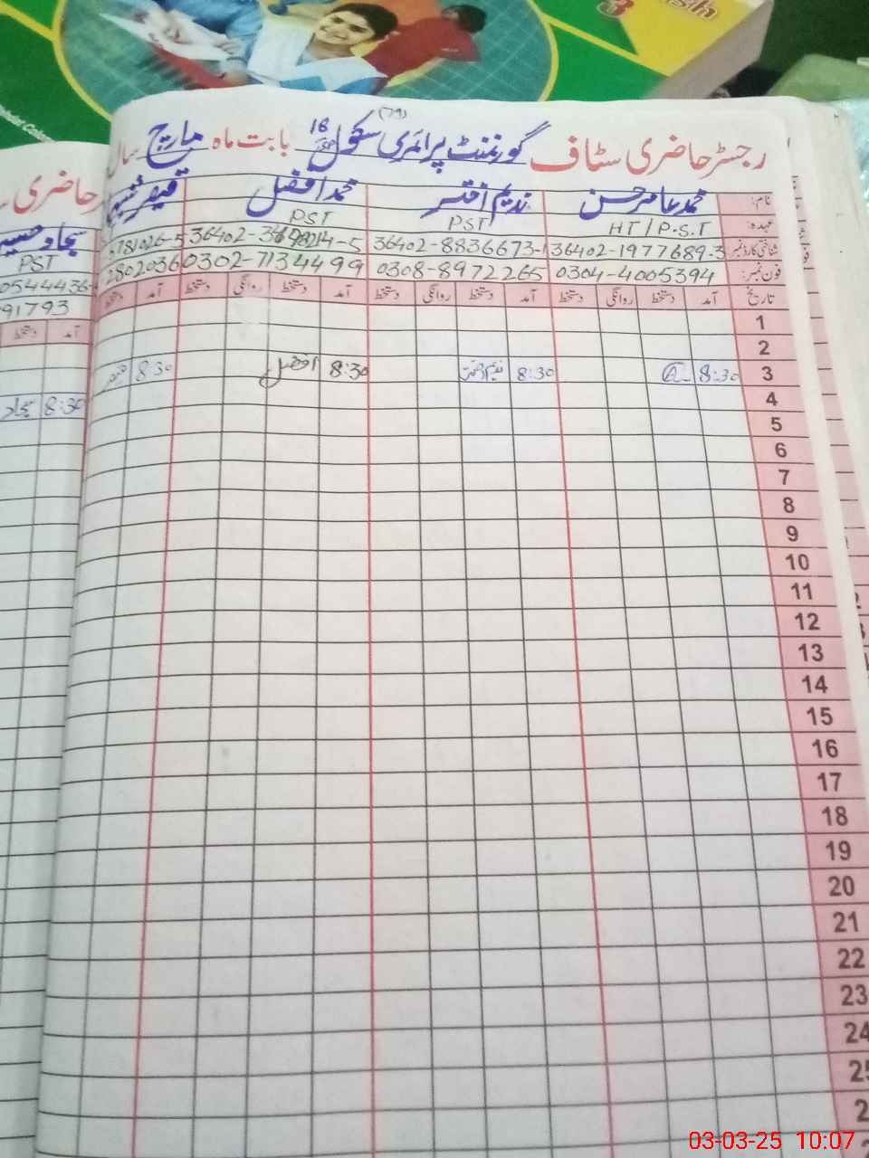 | Name: MAa**** Ha**** Designation: (School Headmaster's/Headmistress's) PST (Sci Math) Phone/Cell Number: 03**** |