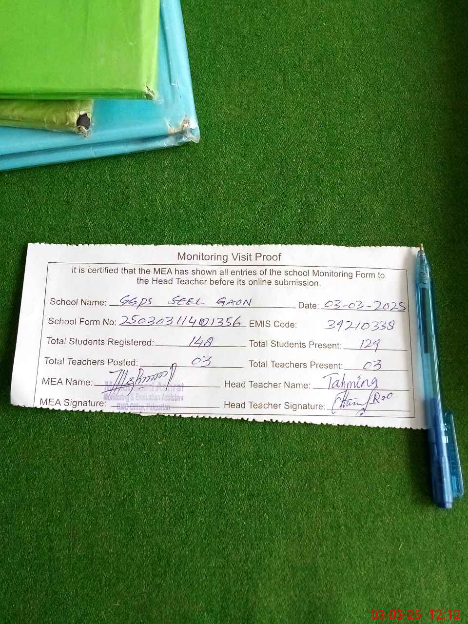 | EMIS Code: 39210338 | Name of School: GGPS SEEL GAON | |||